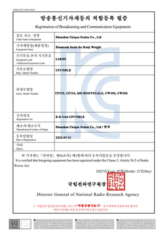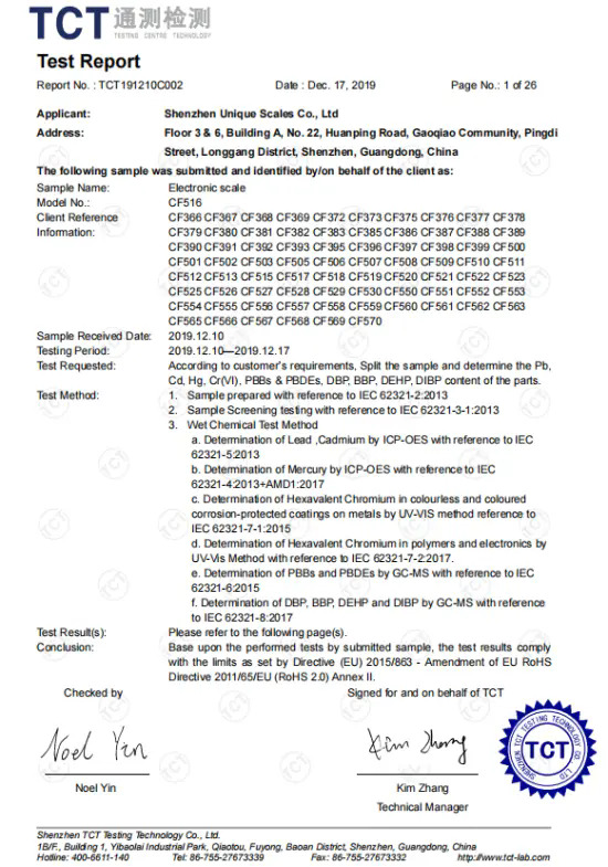Wir verfügen über Systemzertifizierungen wie ISO9001, ISO13485, ISO14001, BSCI, GRS, FDA sowie Produktzertifizierungen wie CE, RoHS, FCC, UKCA, JIS, KC, Telec, Saber und BQB. Unser erfahrenes Hardware-, Software- und Design-Team mit insgesamt 35 Ingenieuren gewährleistet gut durchdachte, urheberrechtlich geschützte und qualitativ hochwertige Waagen.